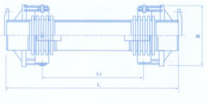 該膨脹節(jié)由兩個(gè)十字銷軸,用長的中間拉板組合而成,它能吸收任意平面內(nèi)的橫向位移,它們的鉸鏈與十字銷軸具有承受內(nèi)壓推力能力